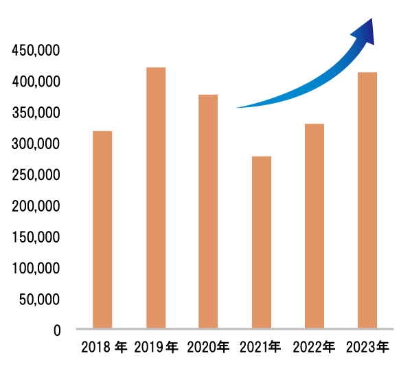 2020年~22年のコロナ渦で一時的に減少しましたが、2023年には回復し、今後益々増加していく傾向にあります。